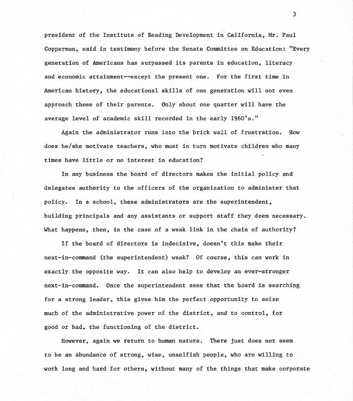 Julie's gentle treatment can be chalked up to "timing". This paper was written (somewhat) before all hell broke loose and the "Four Horsemen of Apocalypse" visited CSD #1...under the guise of "administrator". (Those of you who lived through - SURVIVED - this time period can attach whichever administrator you see fit to whichever horseman!)